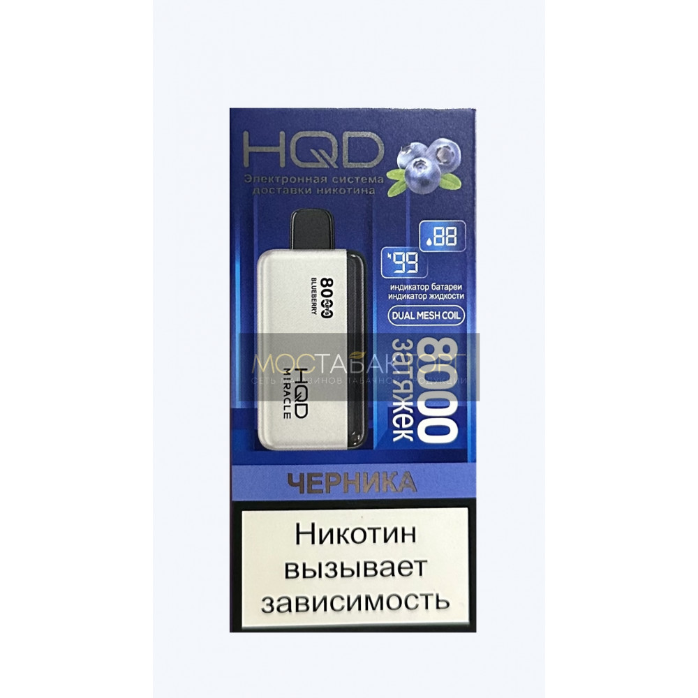| HQD видыMiracle (Миракл) | HQD вкусыЧерника | HQD количество в блоке5 шт |